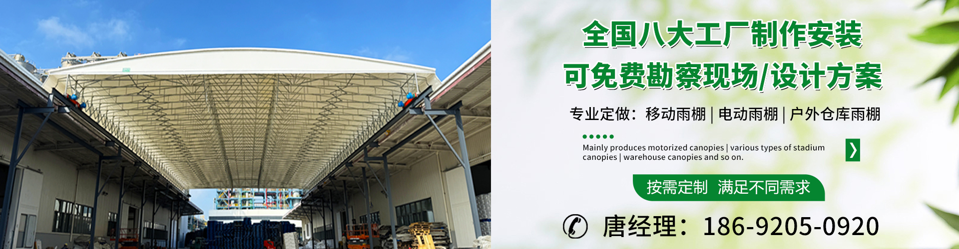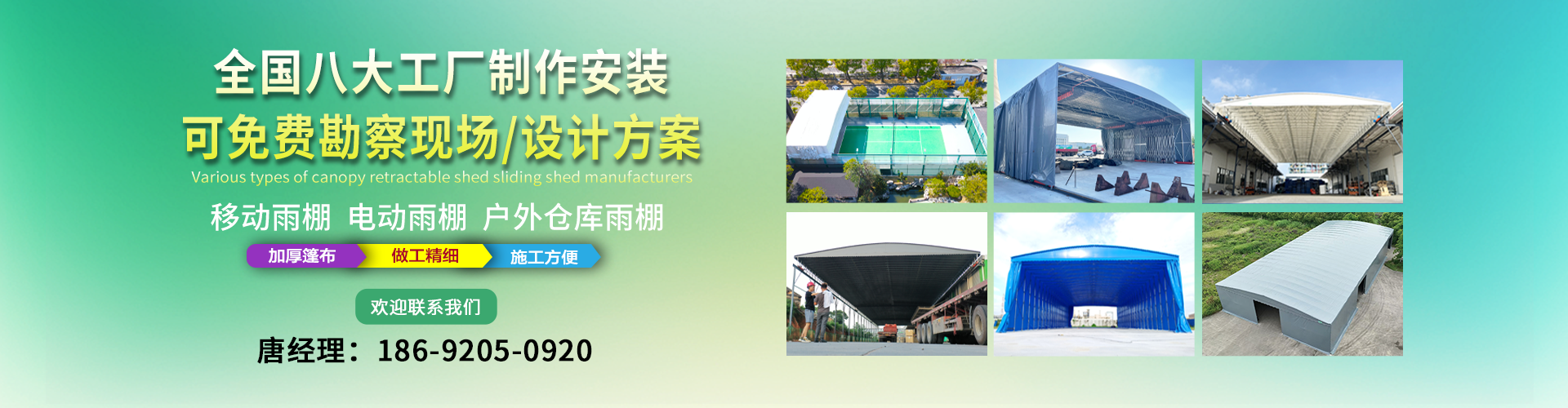 湖南鑫建華鋼結(jié)構(gòu)工程有限公司是一家電動(dòng)雨棚、膜結(jié)構(gòu)車棚研發(fā),生產(chǎn)銷售,施工安裝于一體的專業(yè)鋼結(jié)構(gòu)科技公司,主要產(chǎn)品有伸縮雨棚,電動(dòng)雨棚,膜結(jié)構(gòu)車棚等。 湖南地區(qū)職員目前有200多人,自建廠房15600平方米,配備先進(jìn)的生產(chǎn)流水線,使每件品質(zhì)產(chǎn)品的堅(jiān)實(shí)基礎(chǔ)。 公司在衡陽(yáng),蘇州,天津,濟(jì)南,鄭州,江門,佛山,武漢,重慶均設(shè)有服務(wù)工廠,擁有專業(yè)的技術(shù)團(tuán)隊(duì),配備先進(jìn)的設(shè)備和流水線生產(chǎn),產(chǎn)能高,貨源充足,發(fā)貨速度快,服務(wù)區(qū)域廣。 移動(dòng)伸縮棚適用于通道臨時(shí)倉(cāng)儲(chǔ)、戶外運(yùn)動(dòng)遮陽(yáng)、污水池遮蓋、能源交通、熱力化工、礦山、船舶制造及市政建設(shè)、物流、碼頭等領(lǐng)域的構(gòu)件制作加工,成品半成品存放、倉(cāng)庫(kù)、野外儀器設(shè)備操作用房等。尤其是對(duì)工廠發(fā)貨、倉(cāng)儲(chǔ)臨時(shí)遮雨防嗮,梅雨期較長(zhǎng)、建設(shè)周期較短的工程施工等特別適用。還可根據(jù)用戶需求量身定制、適合企業(yè)所需不同款式的產(chǎn)品。 我公司堅(jiān)持“誠(chéng)信社會(huì)為本,客戶滿意為榮”的經(jīng)營(yíng)理念,做到質(zhì)量把控,嚴(yán)格管理,精益求精,恪守承諾。使鑫建華逐步走向成熟,其系統(tǒng)化、專業(yè)化日趨完善。以專業(yè)的技術(shù)、科學(xué)的管理,更高的產(chǎn)品質(zhì)量,優(yōu)良的企業(yè)信譽(yù),真誠(chéng)的客戶服務(wù),靈活多樣的經(jīng)營(yíng)方式和務(wù)實(shí)創(chuàng)新的企業(yè)精神愿與社會(huì)各界攜手合作,為推動(dòng)智能鋼結(jié)構(gòu)建筑事業(yè)的發(fā)展而不斷努力。...
